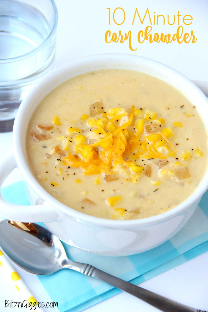 10 Minute Corn Chowder - A delicious, creamy chowder with simple ingredients that comes together in a matter of minutes!