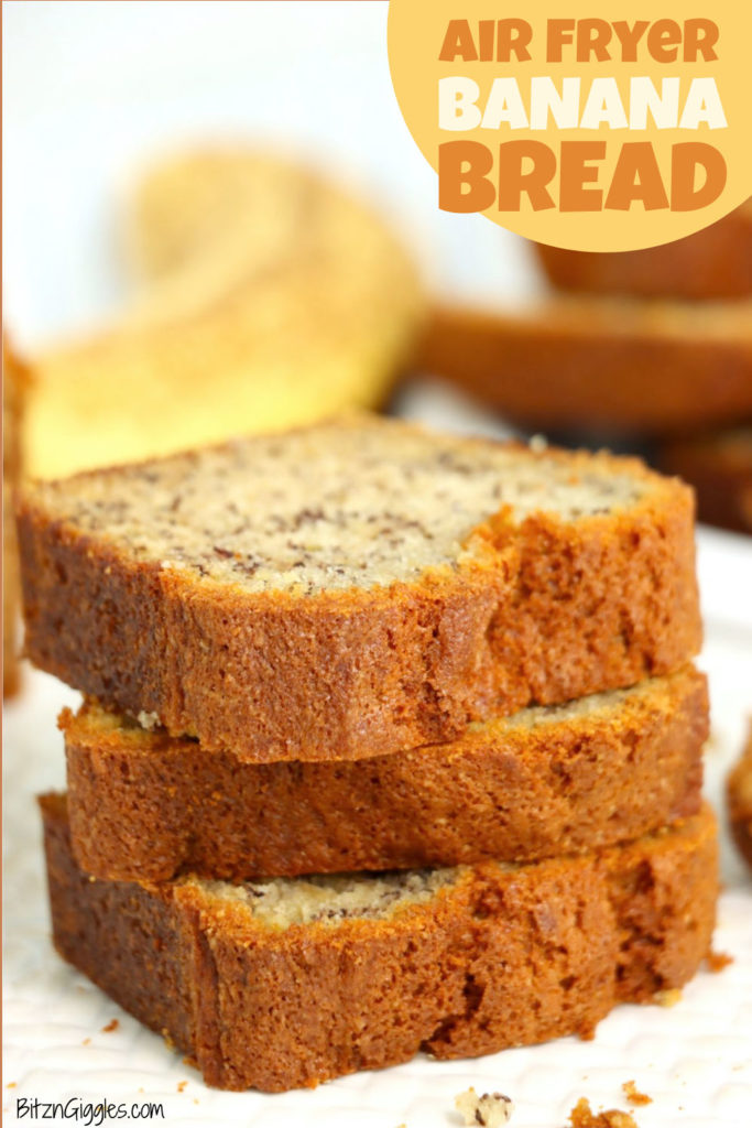 The recipe makes three mini loaves of banana bread. I used a basket air fryer and was able to fit two loaves at a time.