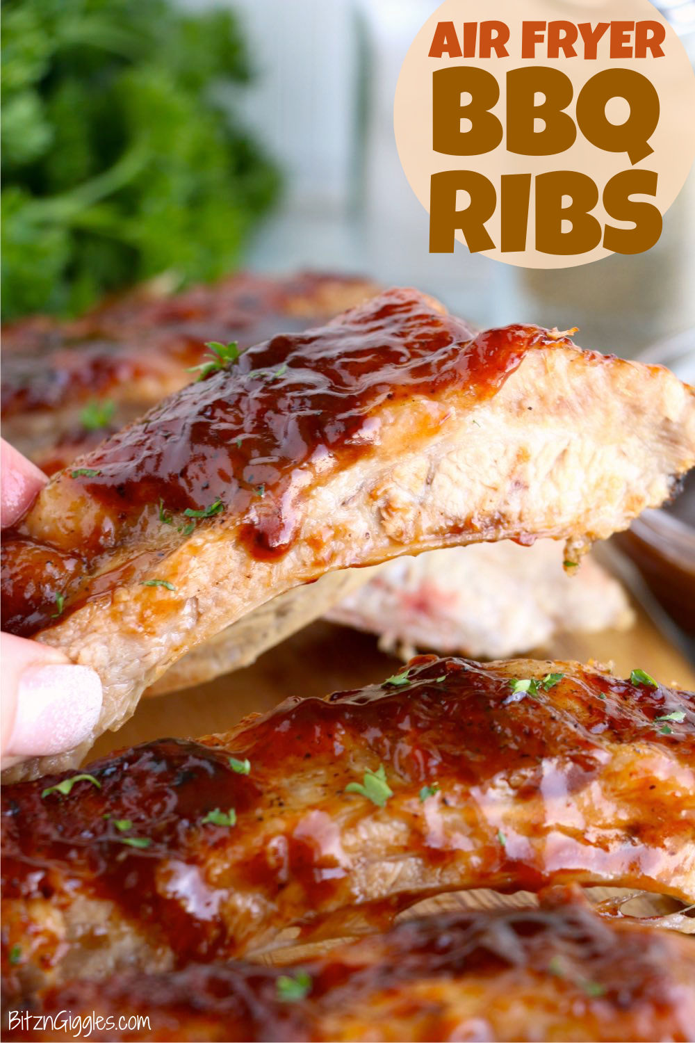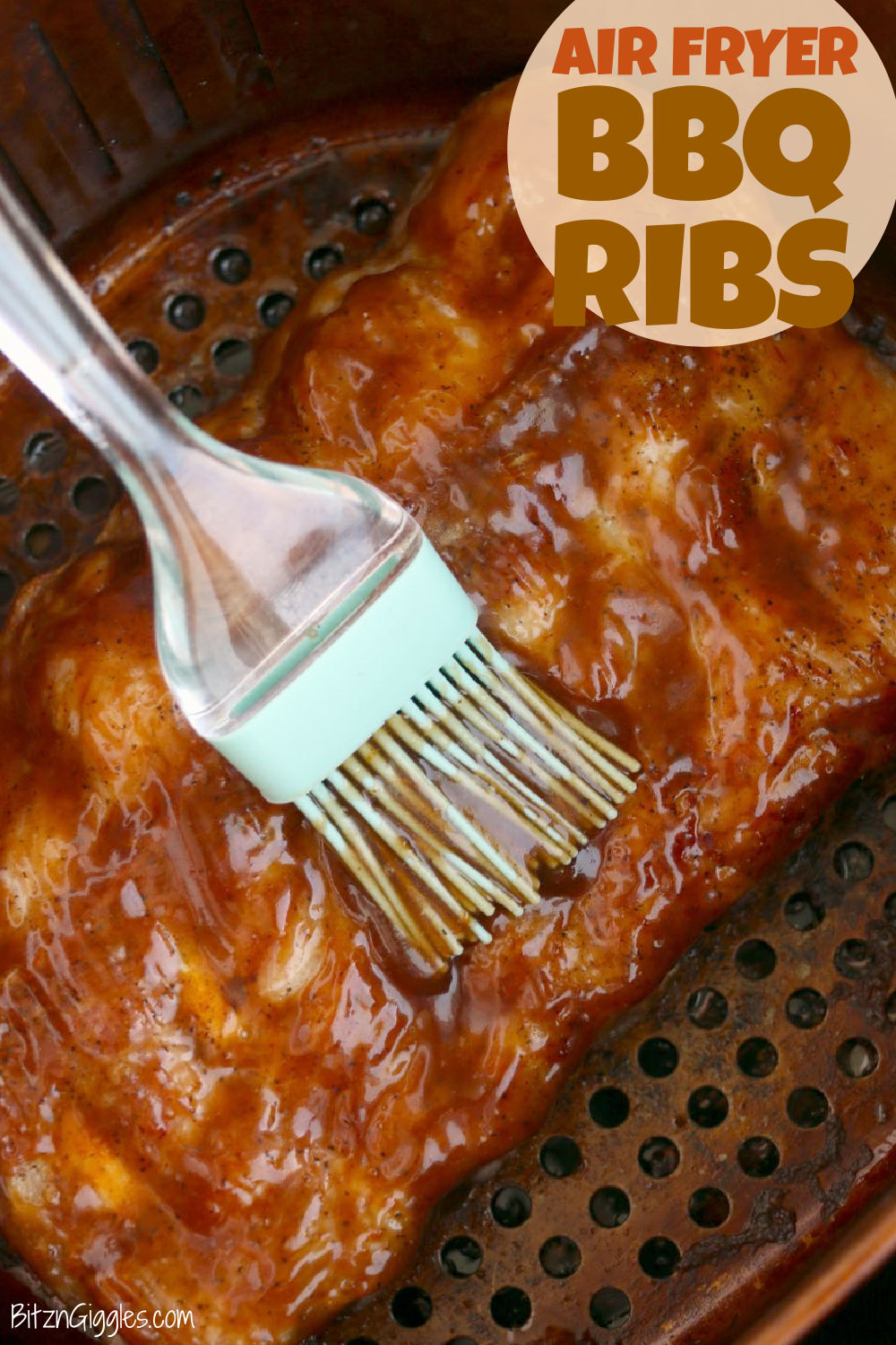 Air Fryer BBQ Ribs - Tender and juicy ribs slathered in your favorite BBQ sauce and crisped to perfection in an air fryer.