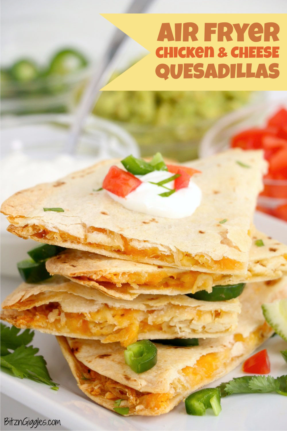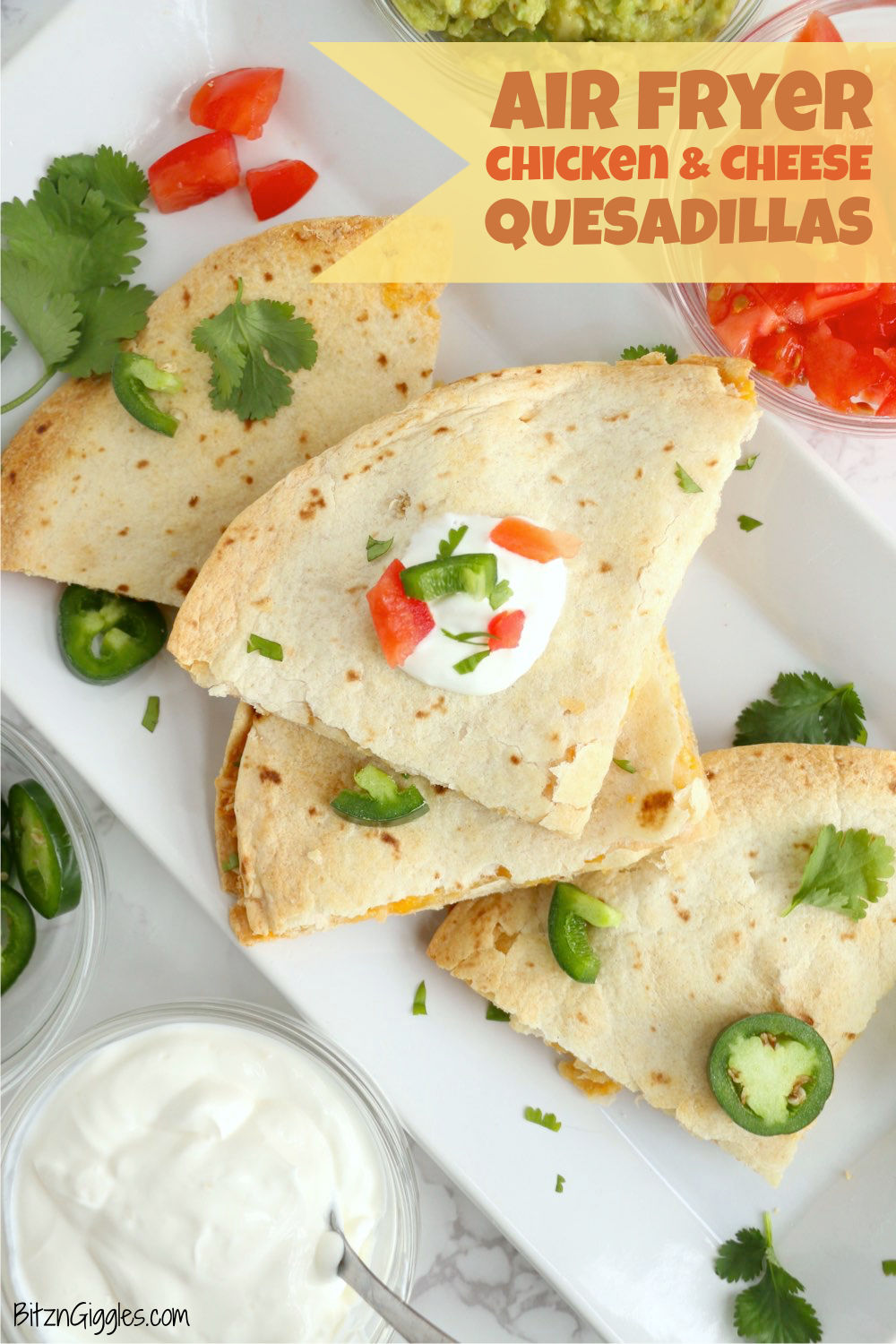 Air Fryer Chicken and Cheese Quesadillas - Easy and delicious chicken and cheese quesadillas made in minutes in the air fryer!