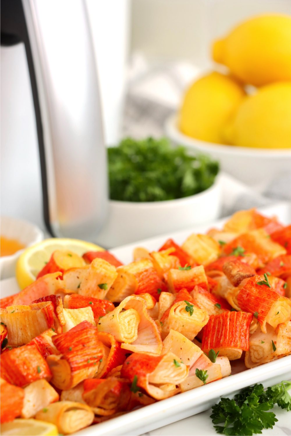 - No air fryer? No problem—prepare the crab similarly by laying it out on a rimmed baking sheet, baking at 400ºF for 10-20 minutes, stirring halfway, until it reaches your preferred crispness.