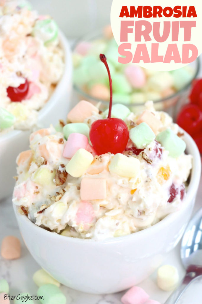 This delicious Ambrosia Fruit Salad is a classic recipe that is easy to make and spectacular for spring! It can be made as a simple side dish or a fresh dessert! It’s simple and refreshing and so tasty!