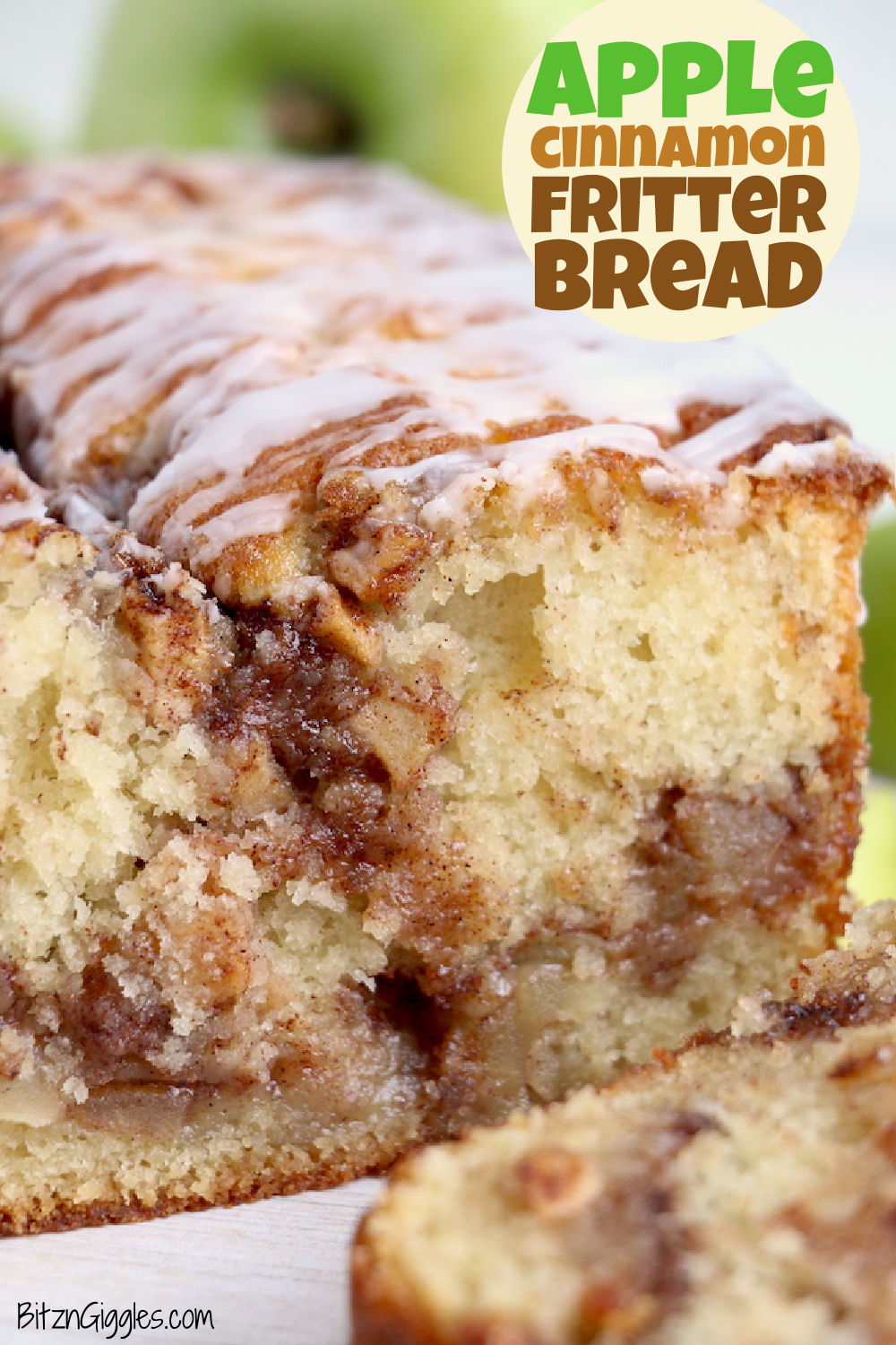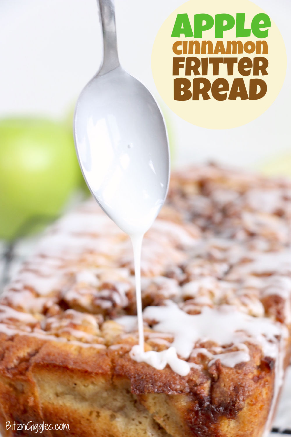 Apple Cinnamon Fritter Bread - Moist, delicious homemade quick bread with chunks of juicy apples and layers of brown sugar and cinnamon swirled throughout - drizzled with a sweet vanilla icing.
