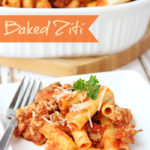 Baked Ziti - A classic, comforting dish featuring ground turkey, pasta, sauce and parmesan cheese. Perfect for a family meal or entertaining a small group!