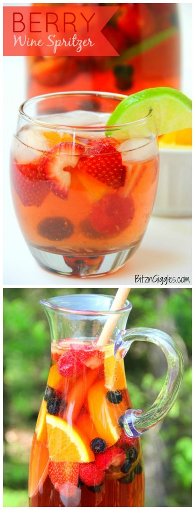 This berry wine spritzer is just so pretty. I love all of that fresh fruit floating around in there!