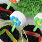 They aren’t just the traditional dirt cups, however. These are bloomin’ dirt cups! Because who can resist an edible flower to go along with the Oreo dirt and gummy worms?