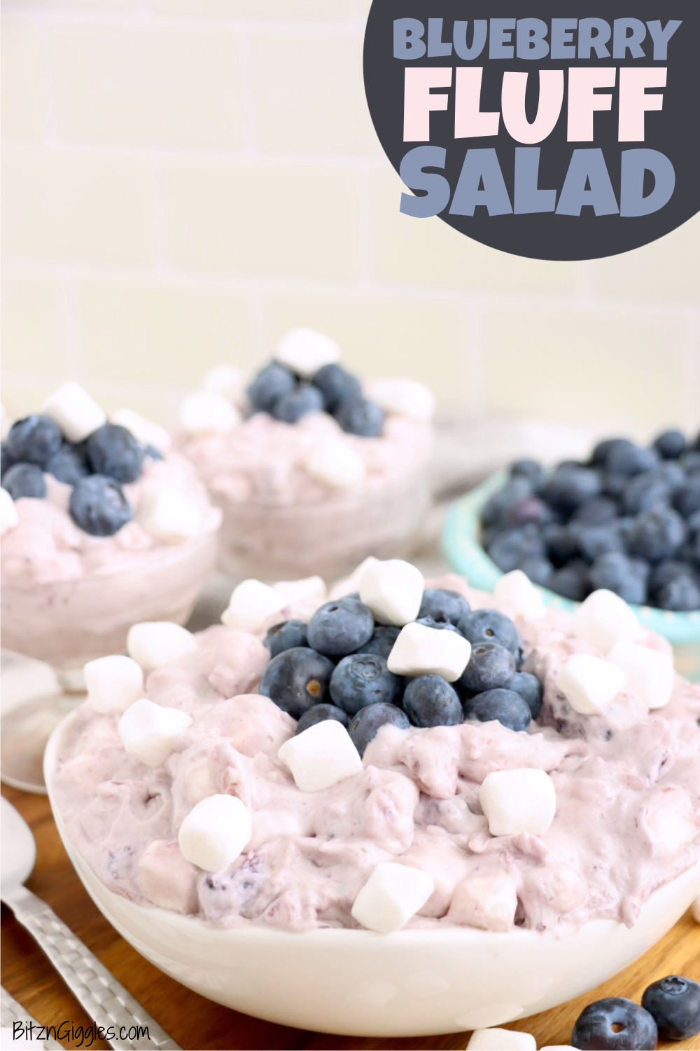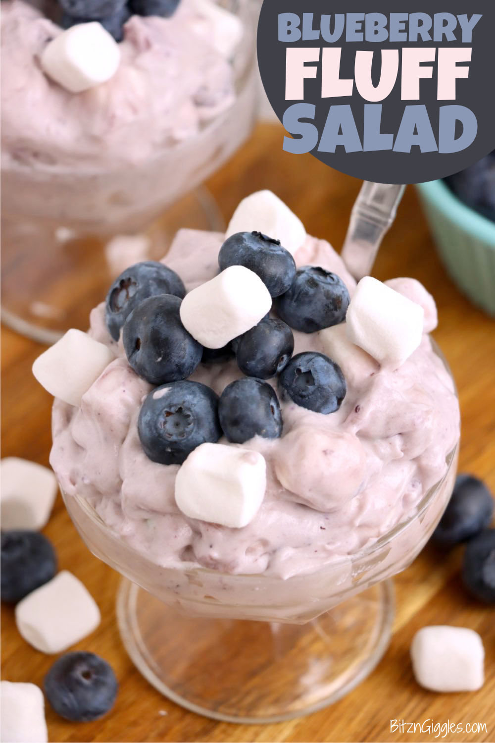 Blueberry Fluff Salad - Juicy blueberries and crushed pineapple nestled in fluffy marshmallows, creamy vanilla pudding, and airy whipped cream.