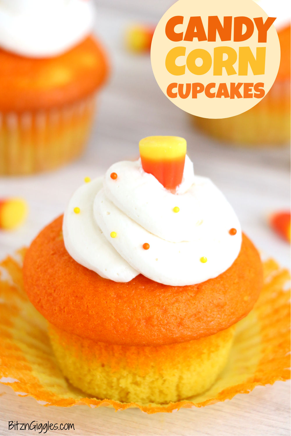 The Halloween fun continues this week with festive Candy Corn Cupcakes! These cupcakes don't really taste like candy corn, though.