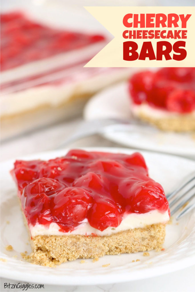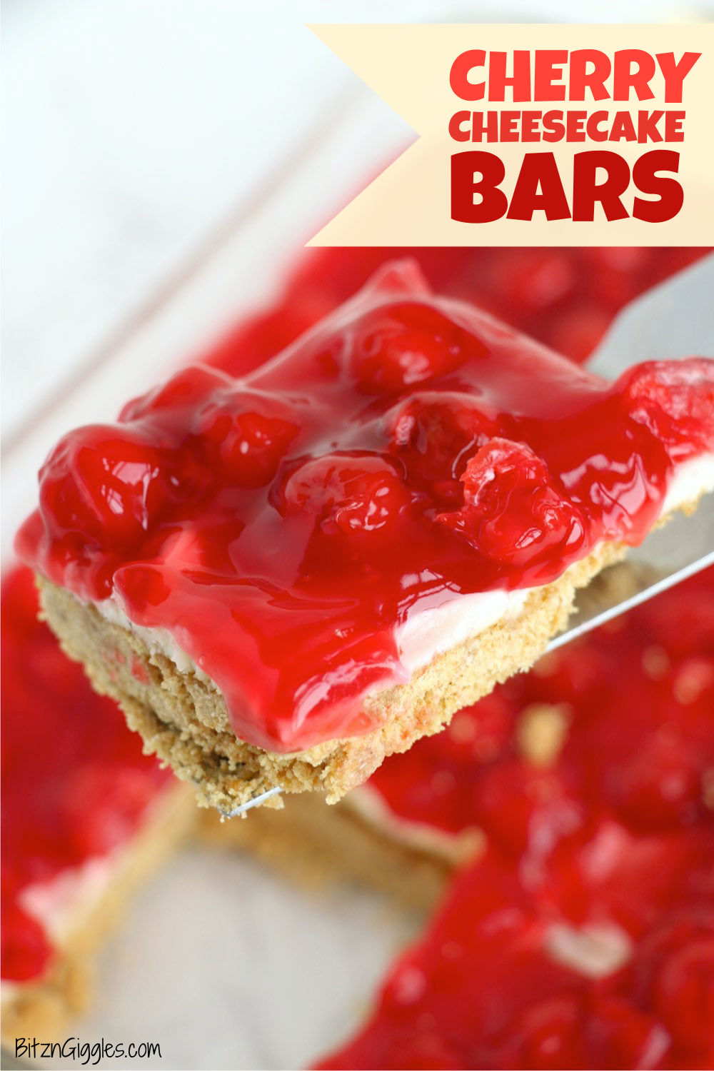 Cherry Cheesecake Bars are one of the most delicious and easy desserts you will ever make! A crumbly graham cracker crust is filled with creamy cheesecake and topped with cherry pie filling.