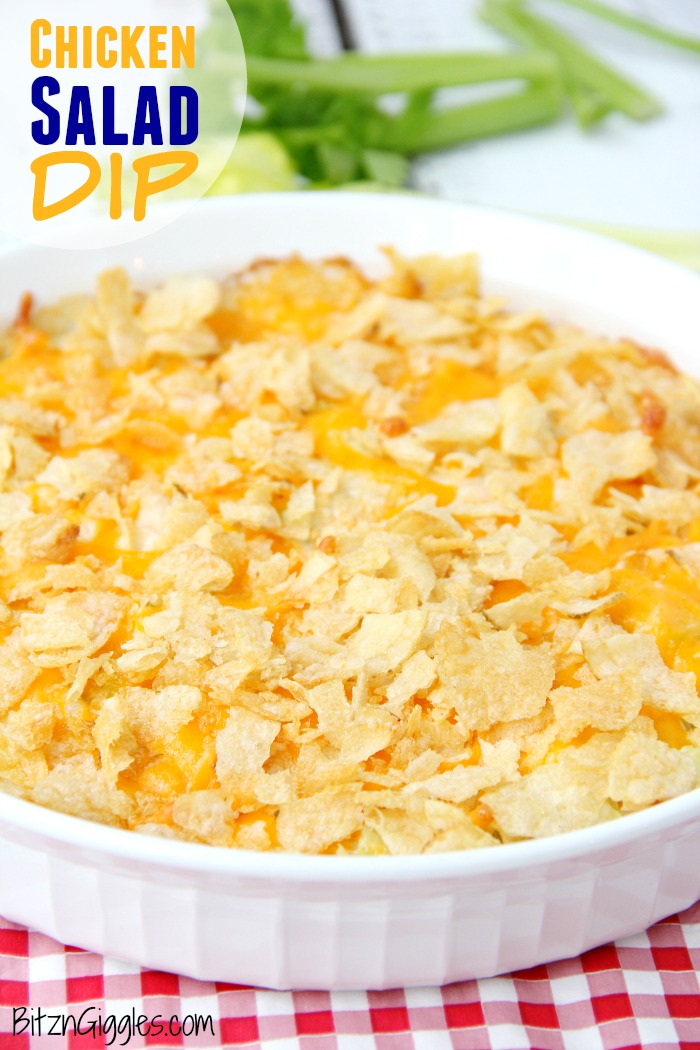 There are some classic recipes that just never get old. You know the ones I'm talking about. . . they show up at potlucks, in church recipe books and on the table when you go back home to visit. This Chicken Salad Dip is one of them! This dip is a twist on a classic hot chicken salad recipe that I've had in my own recipe box at home for some time now. It's a cheesy and creamy chicken mixture topped with crushed potato chips, perfect for cracker or tortilla chip dipping!