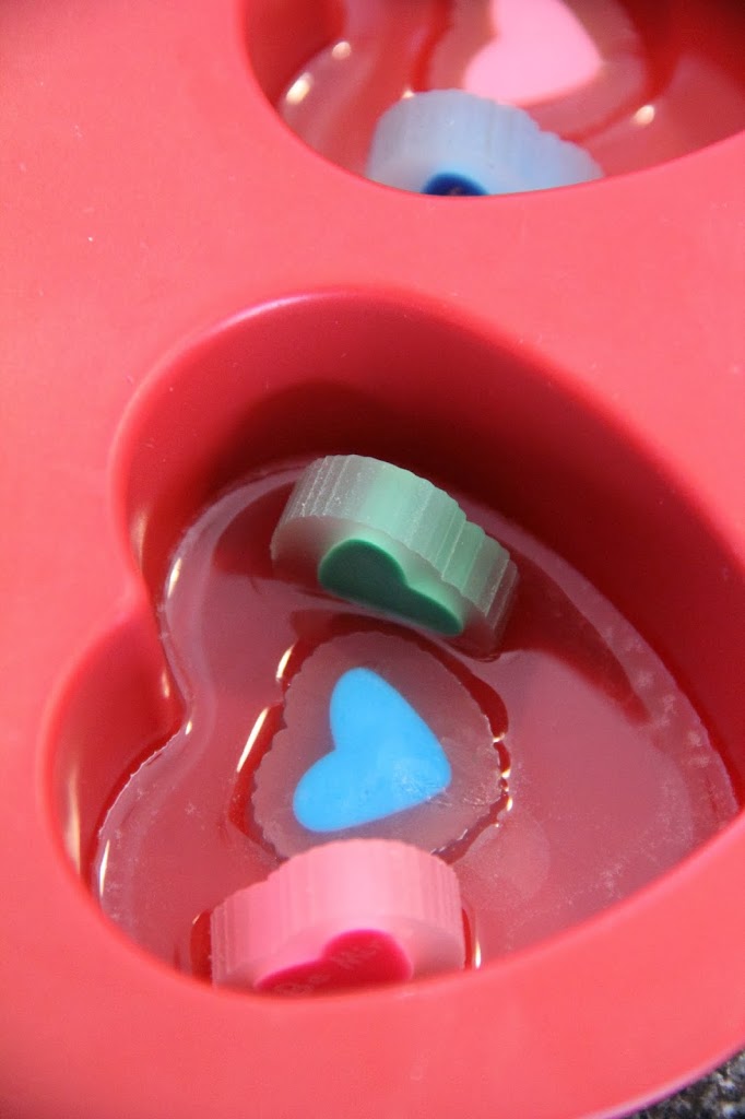 After you let the hearts set for about an hour or more, you can pop them out. They come out super easy!