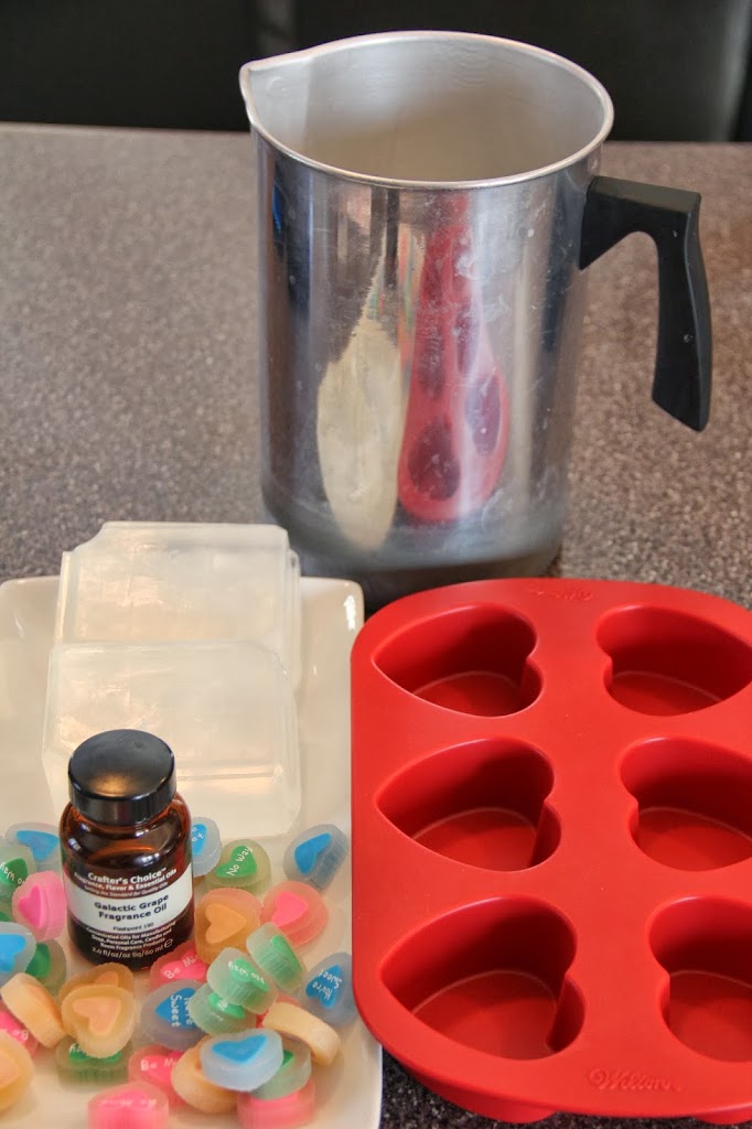 - Clear glycerin soap (I used two sections from a 2 lb. block)