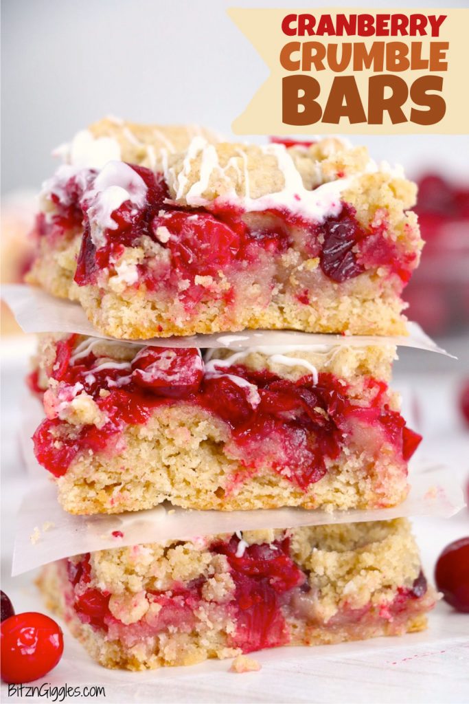 Today we're getting into the festive holiday spirit and making Cranberry Crumble Bars! These dessert bars are made with fresh cranberries and a buttery, flaky crust, topped with oatmeal crumble and a sweet white chocolate glaze.