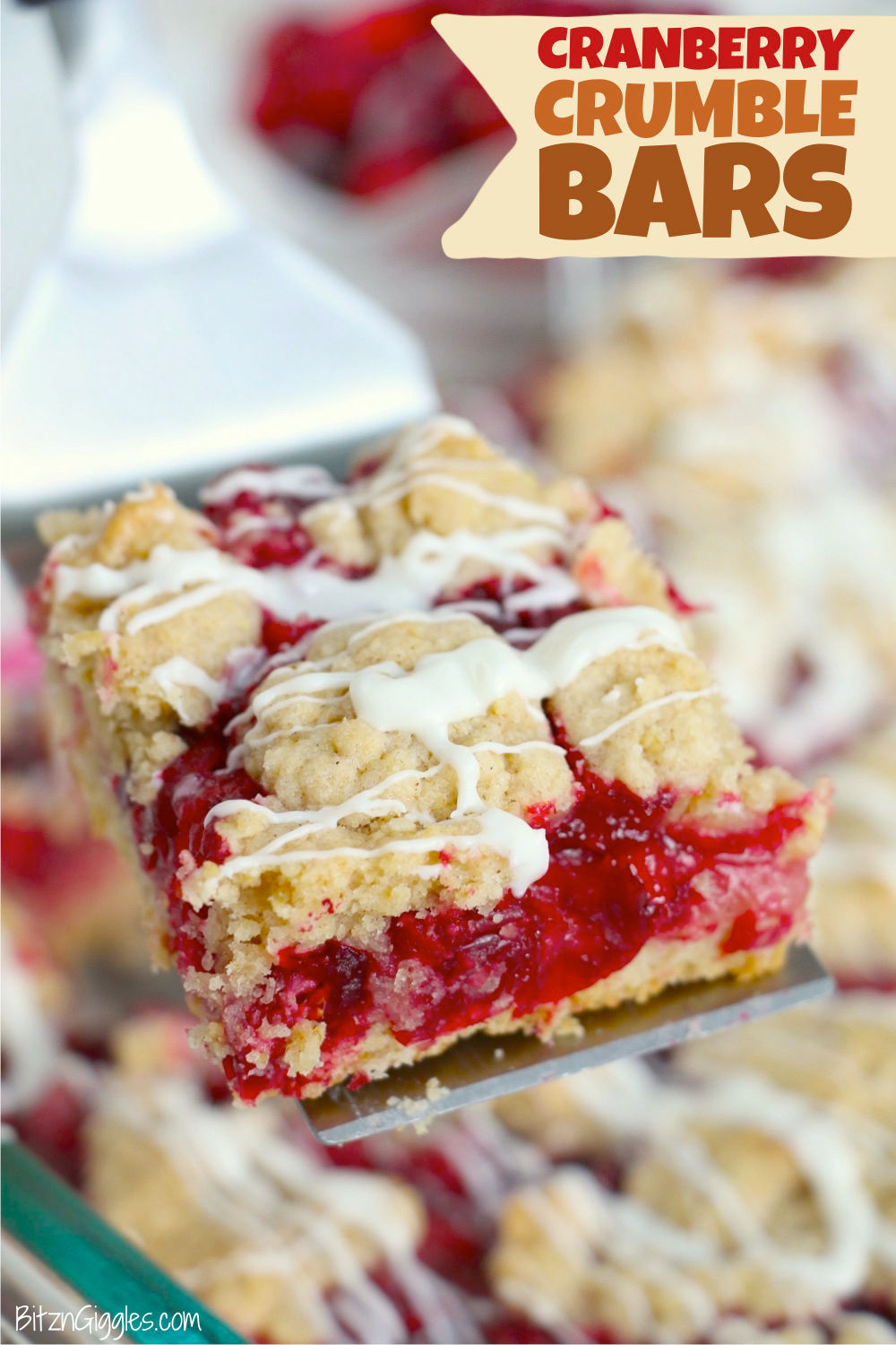 Cranberry Crumble Bars - Simple crumb bars made with fresh cranberries and a buttery, flaky crust, topped with oatmeal crumble and a sweet white chocolate glaze.