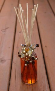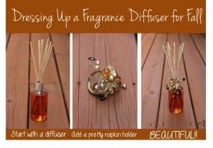 Just slip the napkin holder around the neck of the diffuser bottle and WAH LAH, you have a beautiful decorative piece to display in your home that smells just as good as it looks. Such a simple addition can make such a difference! Have fun decorating!