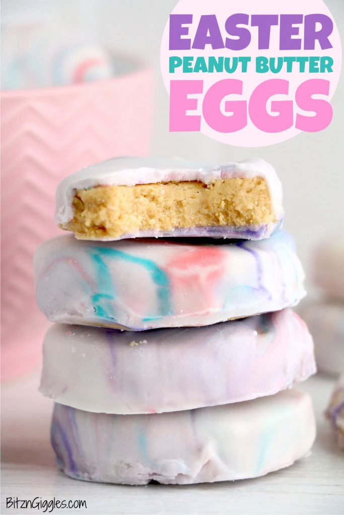 These creamy peanut butter eggs are dipped into a vanilla coating and marbled with pretty pastel colors. It's such a fun recipe to make with your kids and the perfect festive Easter treat!