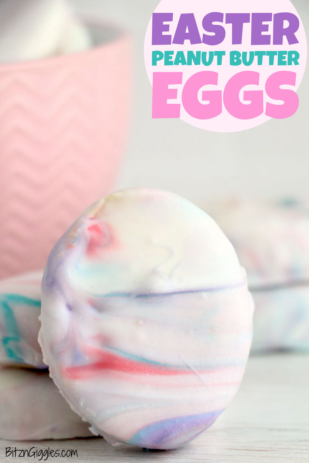 Easter Peanut Butter Eggs - Creamy homemade peanut butter eggs dipped into a vanilla coating and marbled with pretty pastel colors. The perfect treat for Easter!
