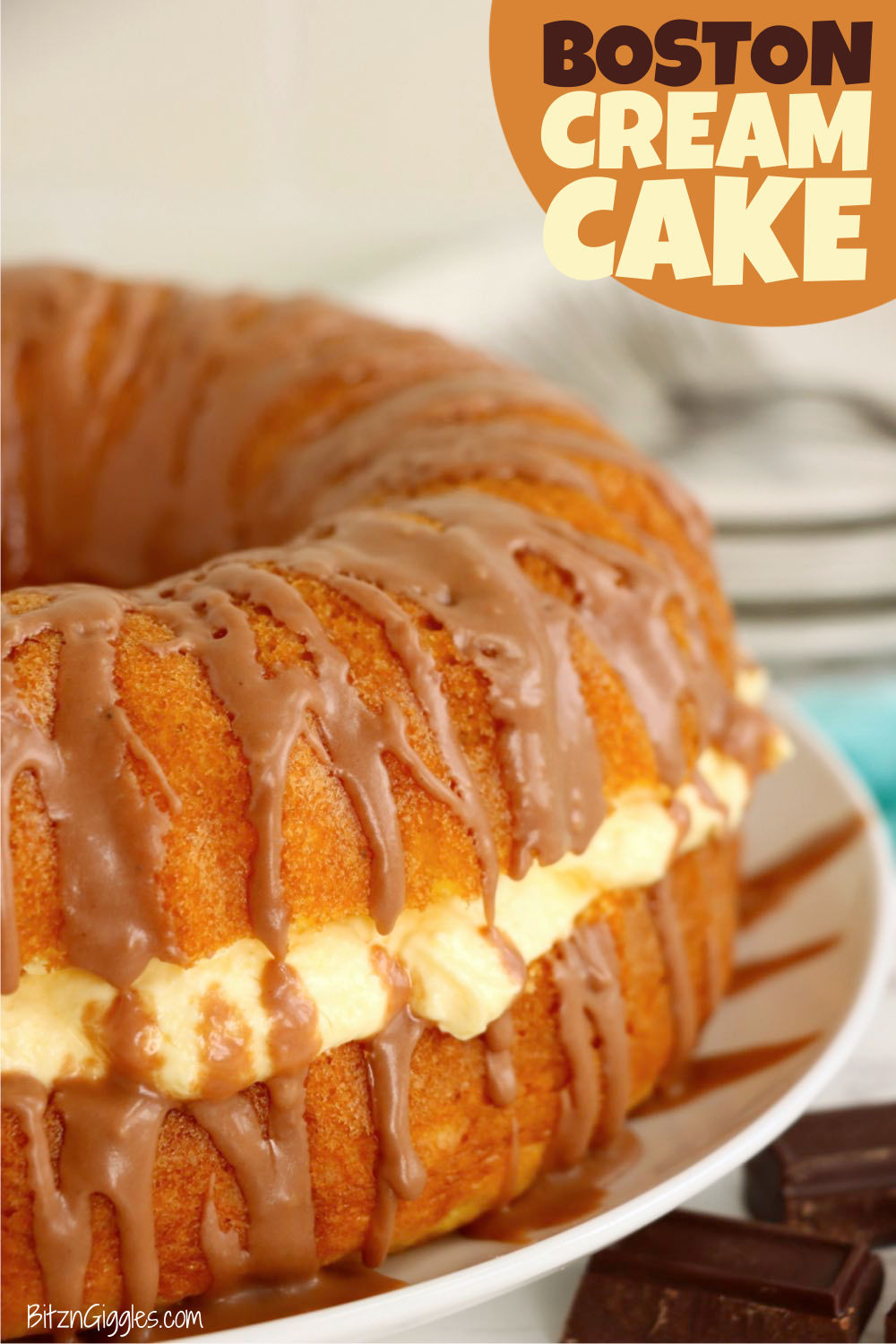 This fabulous Boston Cream Cake is a beloved classic dessert with an absolutely irresistible flavor and decadence that can win over anyone! What’s not to love about a moist and delicate vanilla cake filled with a creamy vanilla custard and drizzled with a heavenly chocolate glaze?