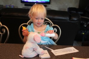 My almost two-year-old is present during almost every recipe I do for this blog. I can't wait until she's ready to start helping in the kitchen. She absolutely loves kittens and puppies right now. This is her favorite puppy that she loves to feed her "magic" milk and juice to. Forget baby dolls, it's all about puppies.