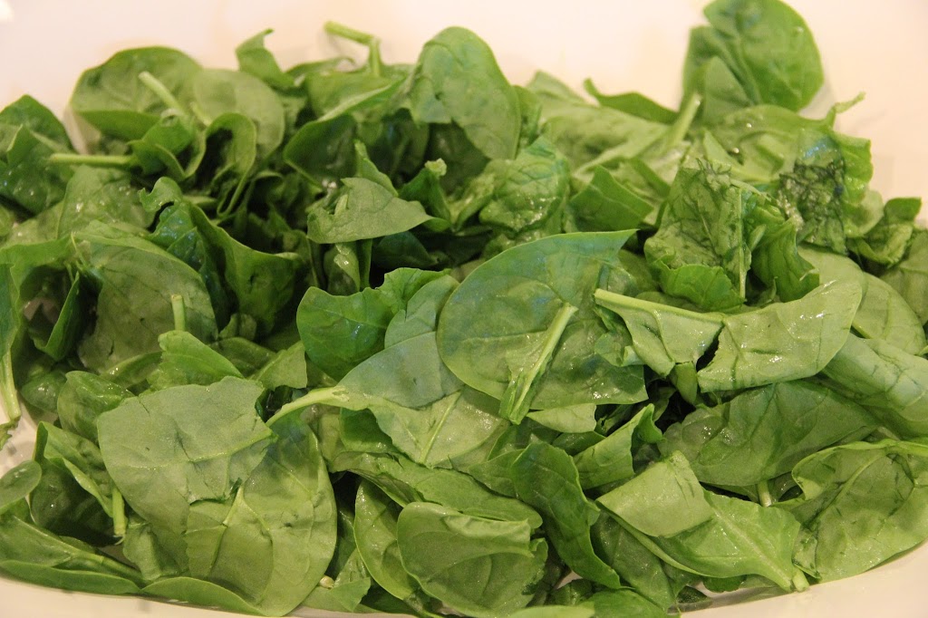 - 1 bunch of spinach torn into bite-size pieces (or cheat and use bagged like I did)