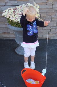 For the party this weekend I plan to put numbers on the backs of the fish from 1-5. Each child will be allowed to catch 4-5 fish per turn. We'll add up the fish and that's the number of tickets they'll win to be able to cash in at the prize table.