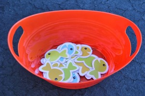 I found these adorable, FREE fish cut-outs from Tricia-Rennea. They are meant to be used for a mobile, but I thought they would be great for my fish pond game at the carnival party.
