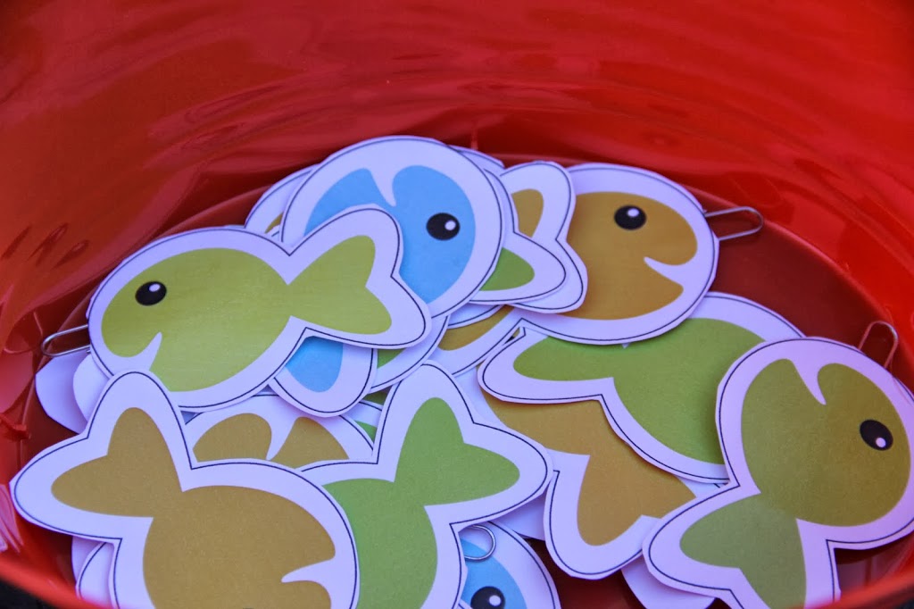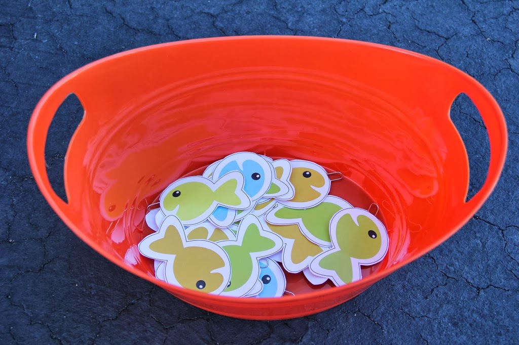 2014 UPDATE: Unfortunately the free fish cut-outs from Tricia-Rennea are no longer available due to the closure of her blog site. You can still put this game together easily by creating your own fish or finding some clip art that is similar to the photos I've included below.