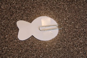 - Make sure that a good portion of the top of the loop of the paper clip issticking out in front of the fish.