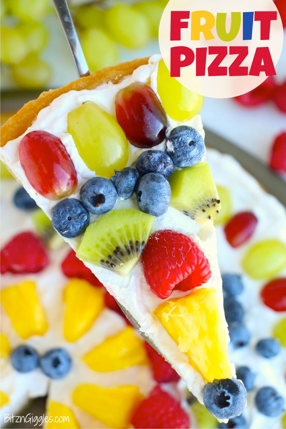For the crust of the fruit pizza, it will take about 8 to 10 minutes for the giant cookie crust to bake. Prep time for the toppings will vary, but including cutting up the different fruits, it shouldn’t take you more than 10 to 15 minutes.