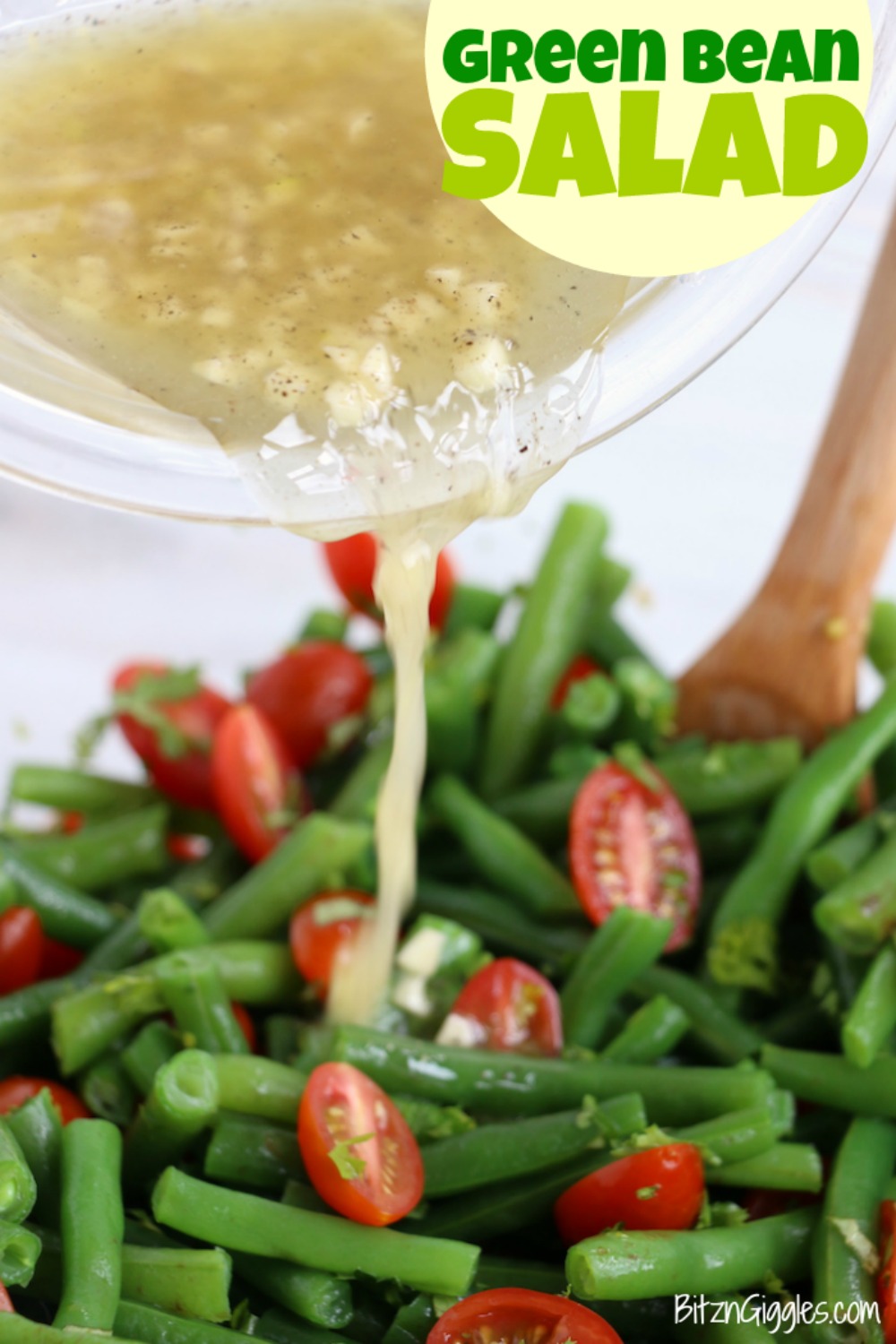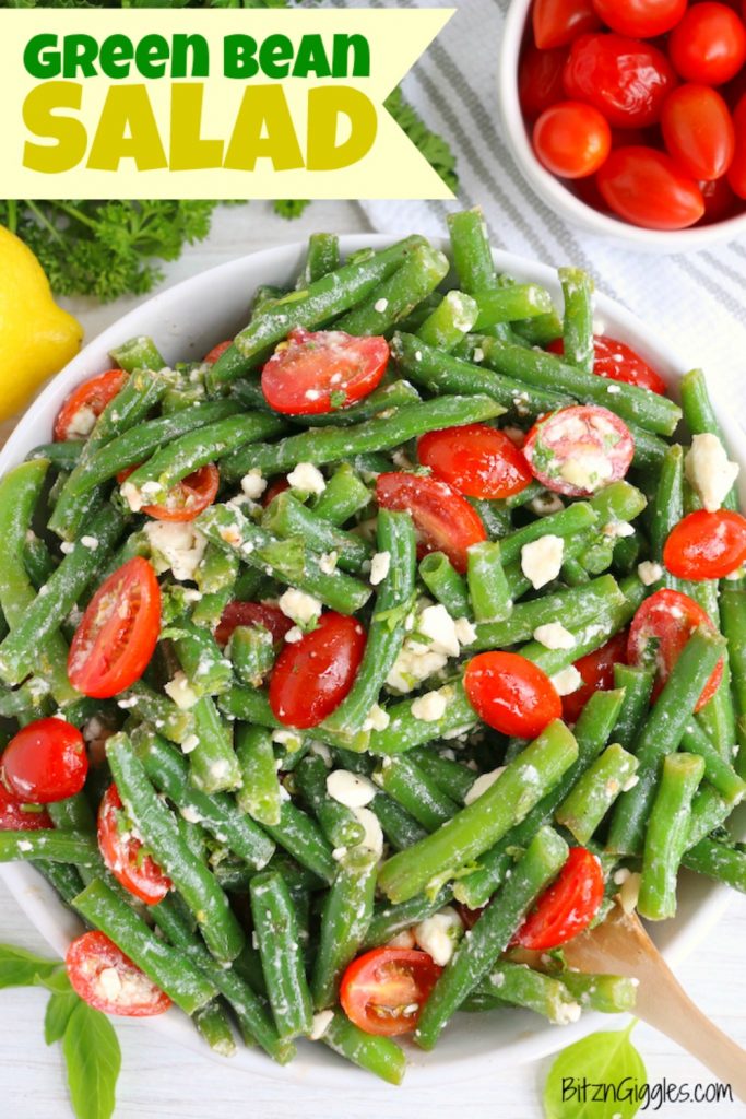 Green Bean Salad - Fresh green beans with tomatoes, fresh herbs and feta cheese, tossed in a light garlic and lemon dressing.