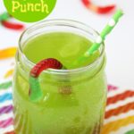 Kids will love sipping on this drink in the summer! Great idea for birthday parties, St. Patrick's Day and Halloween, too! Gummy worms are frozen in a punch mixture and emerge from the ice as the drink is enjoyed! So much fun!