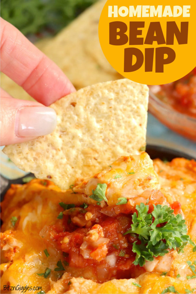 Whether it’s game day or a weekend get-together, it isn't a party without a delicious dip! This easy Homemade Bean Dip is super quick and is loaded with creamy refried beans, cheese, and great taco flavor! It’s a party favorite and the perfect appetizer for any gathering!