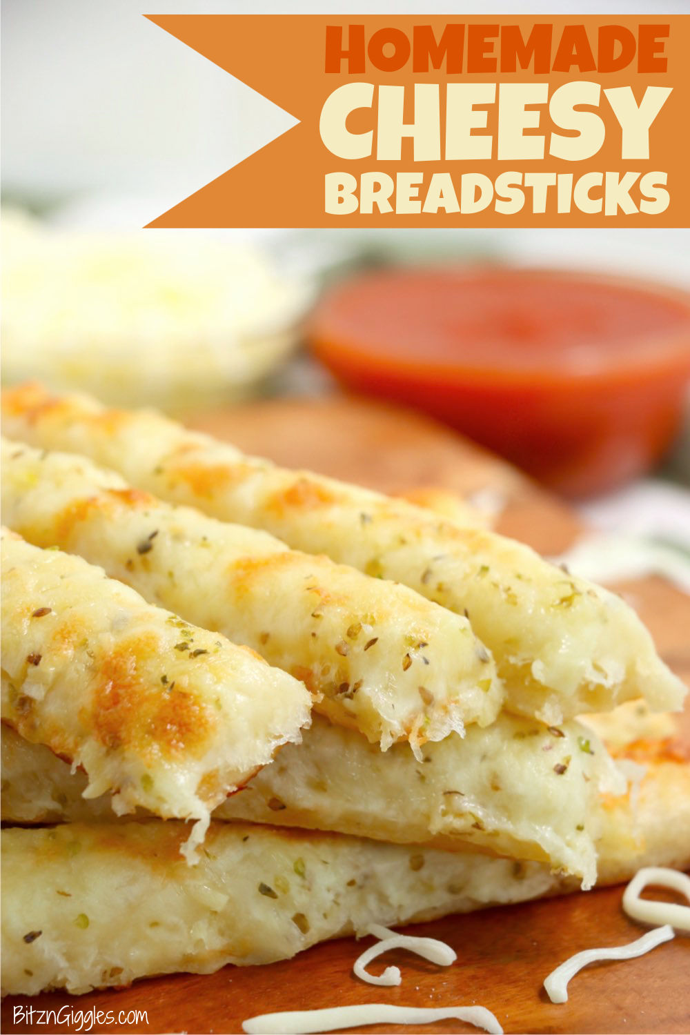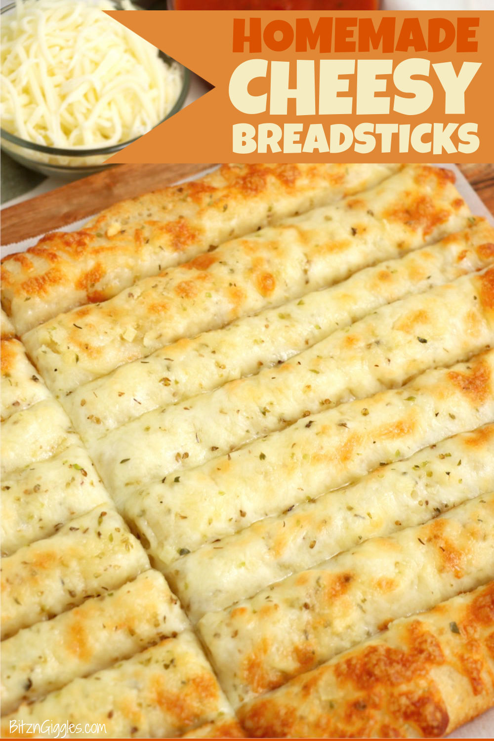 These Homemade Cheesy Breadsticks are so easy to make and they taste amazing! They go perfectly alongside soups, salads, and pastas and taste great dipped in spaghetti sauce or marinara as well!