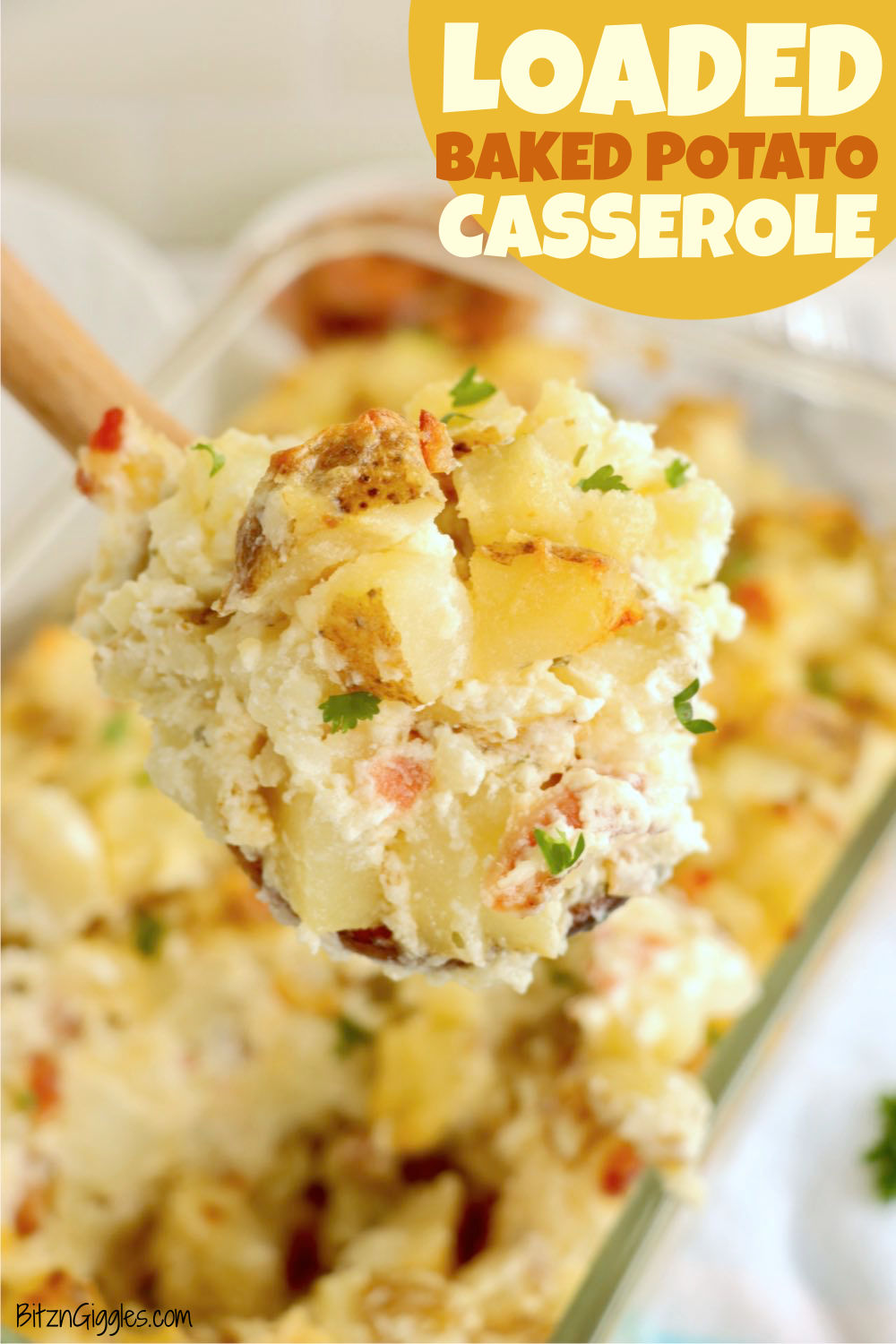 Elevate your family meals with this loaded potato casserole, featuring perfectly baked potatoes infused with crispy bacon, diced onions, and a tangy twist of sour cream—an amazing side dish that's hard to top!