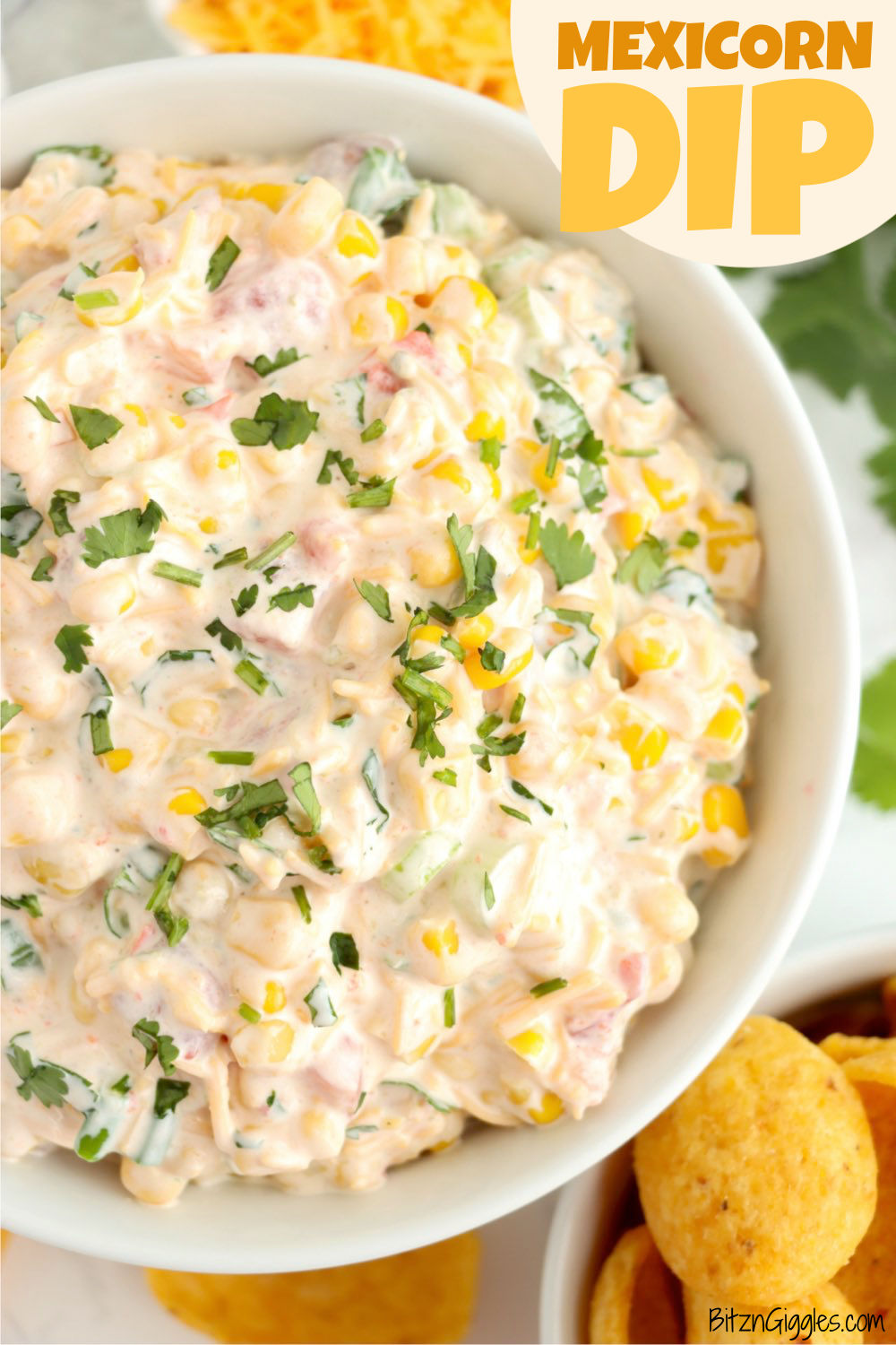 Mexicorn Dip Recipe - A creamy, Mexican-style corn dip that comes together in minutes with just a handful of ingredients. Tastes great with corn chips!