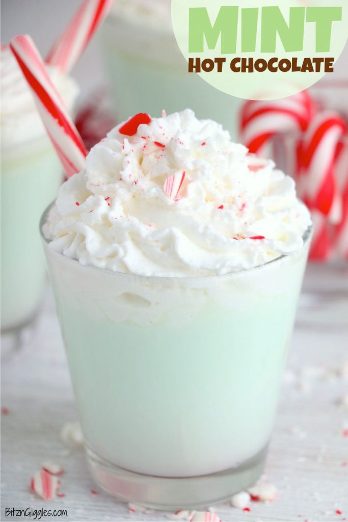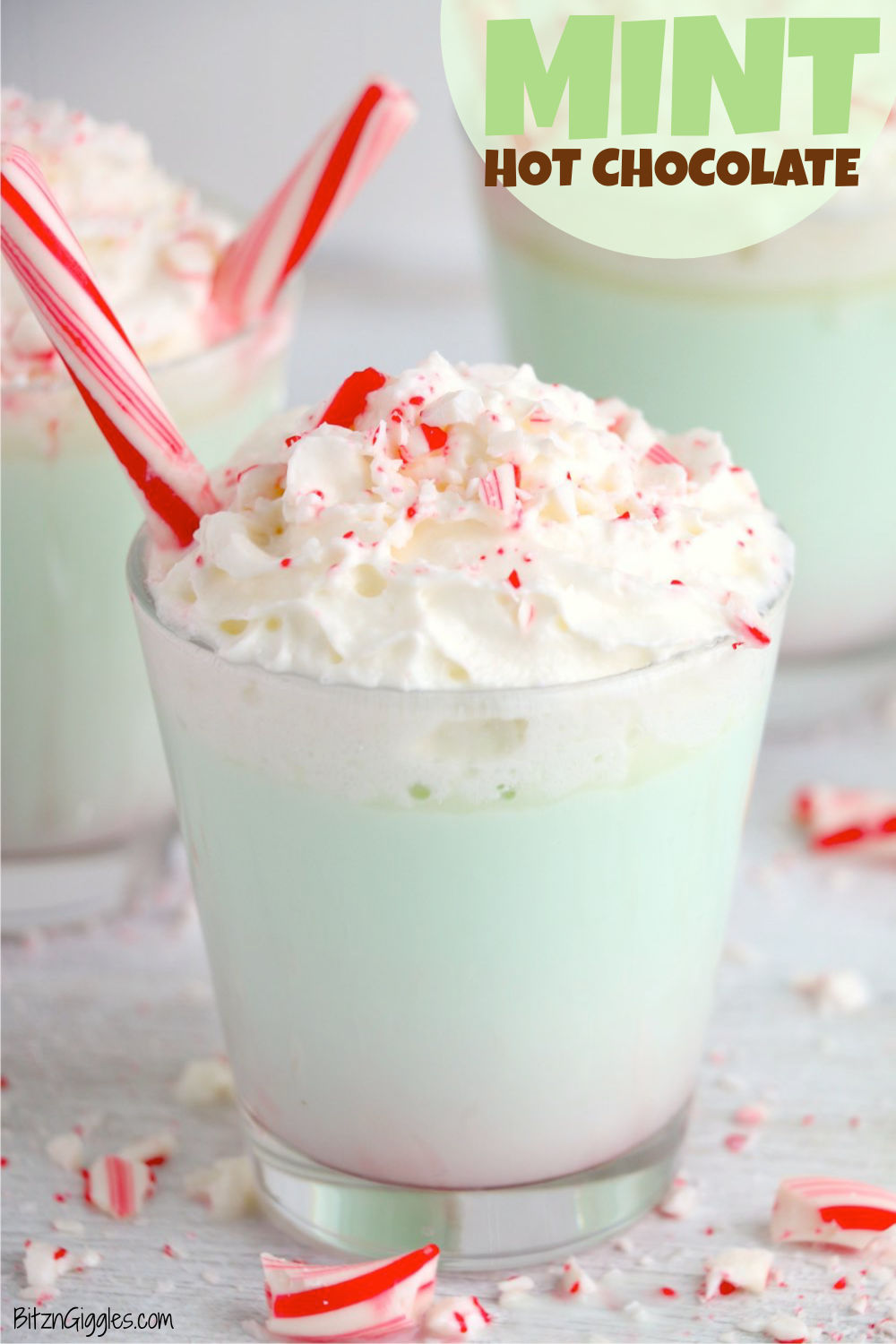 Mint Hot Chocolate - Creamy, homemade cocoa made with white chocolate and a hint of mint. This pretty, festive drink is perfect for over Christmas and St. Patrick's Day!