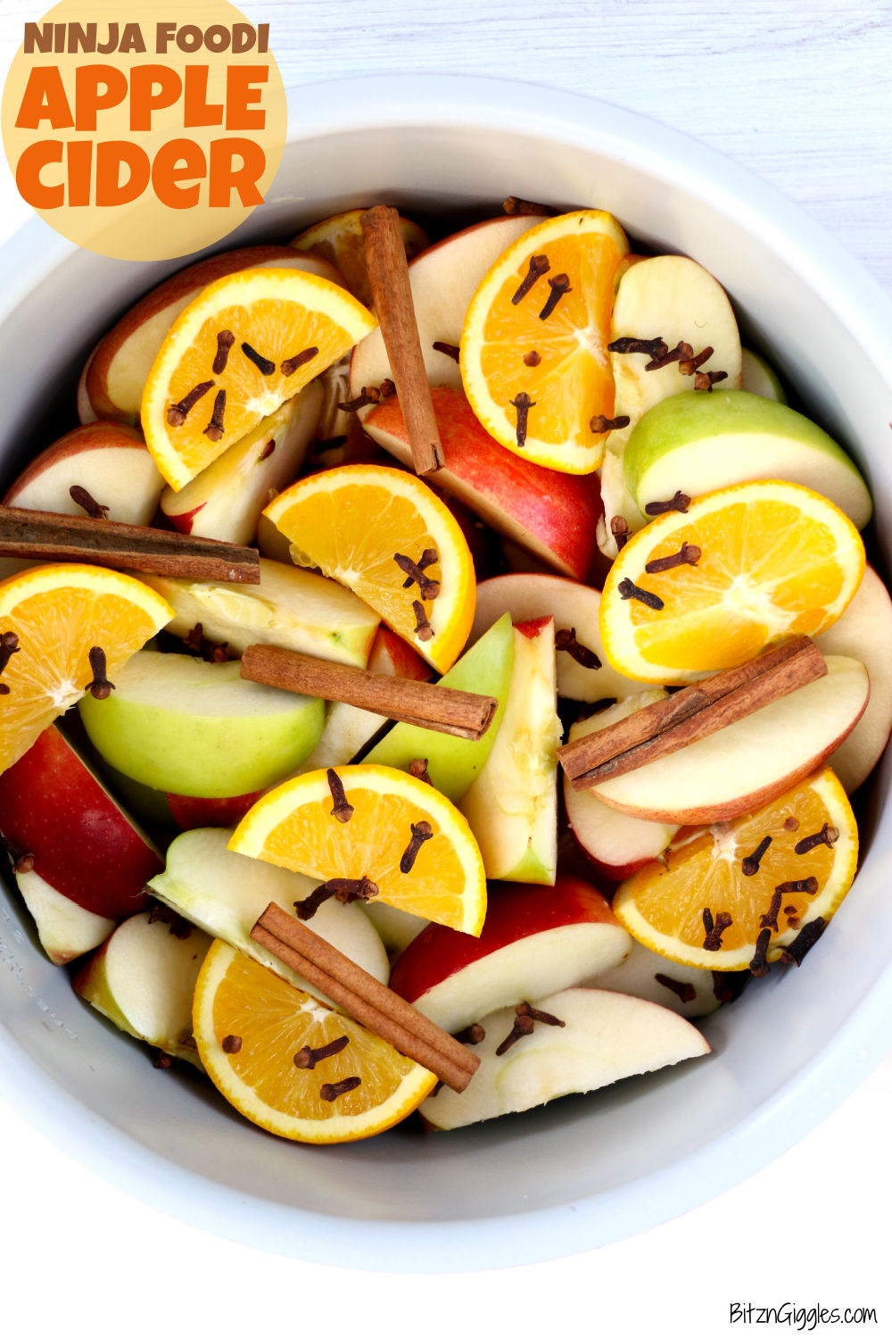 Ninja Foodi Apple Cider - A delicious fall cider made right in the Ninja Foodi featuring fresh apples, oranges, cloves and cinnamon sticks. This will make your home smell amazing!