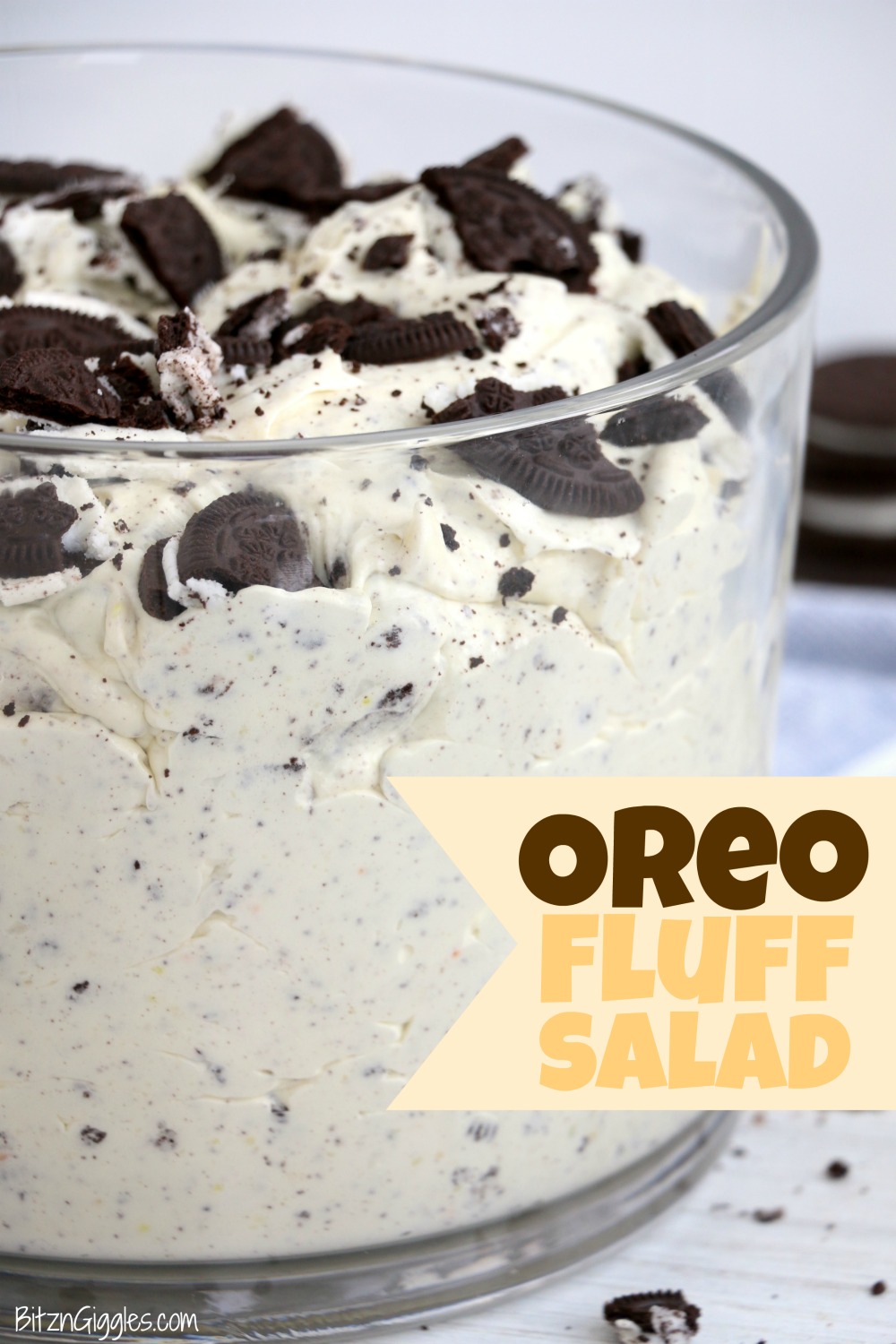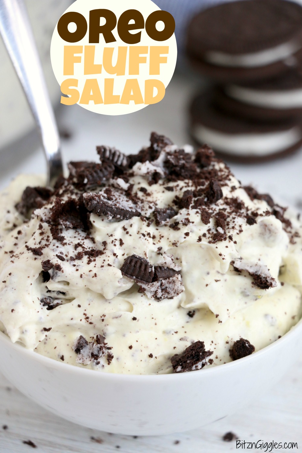 Oreo Fluff Salad - A simple 4-ingredient sweet and fluffy no-bake dessert loaded with Oreo cookies folded into creamy vanilla pudding.