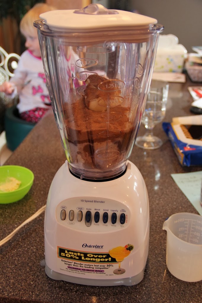 I was just putting something away in the kitchen today when I realized it had been a long time since I cleaned the top of my refrigerator. Am I the only one who forgets to do this? When I was up there getting rid of all of the dust bunnies I discovered my long lost cabinets above the fridge. Does anyone else have these? The cabinets you put things in you never use because you can't reach them without standing on a chair? As long as I was up there, I opened up the doors to get a peek of what was inside. A quesadilla maker, a sandwich maker, an electric knife and my blender. My blender. That's when I got the bright idea that today would be a perfect day for making milkshakes. So that's what we did.