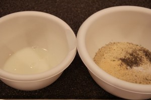 - Place milk in a shallow bowl. In another bowl, combine the cheese, bread crumbs, salt, garlic powder and pepper.