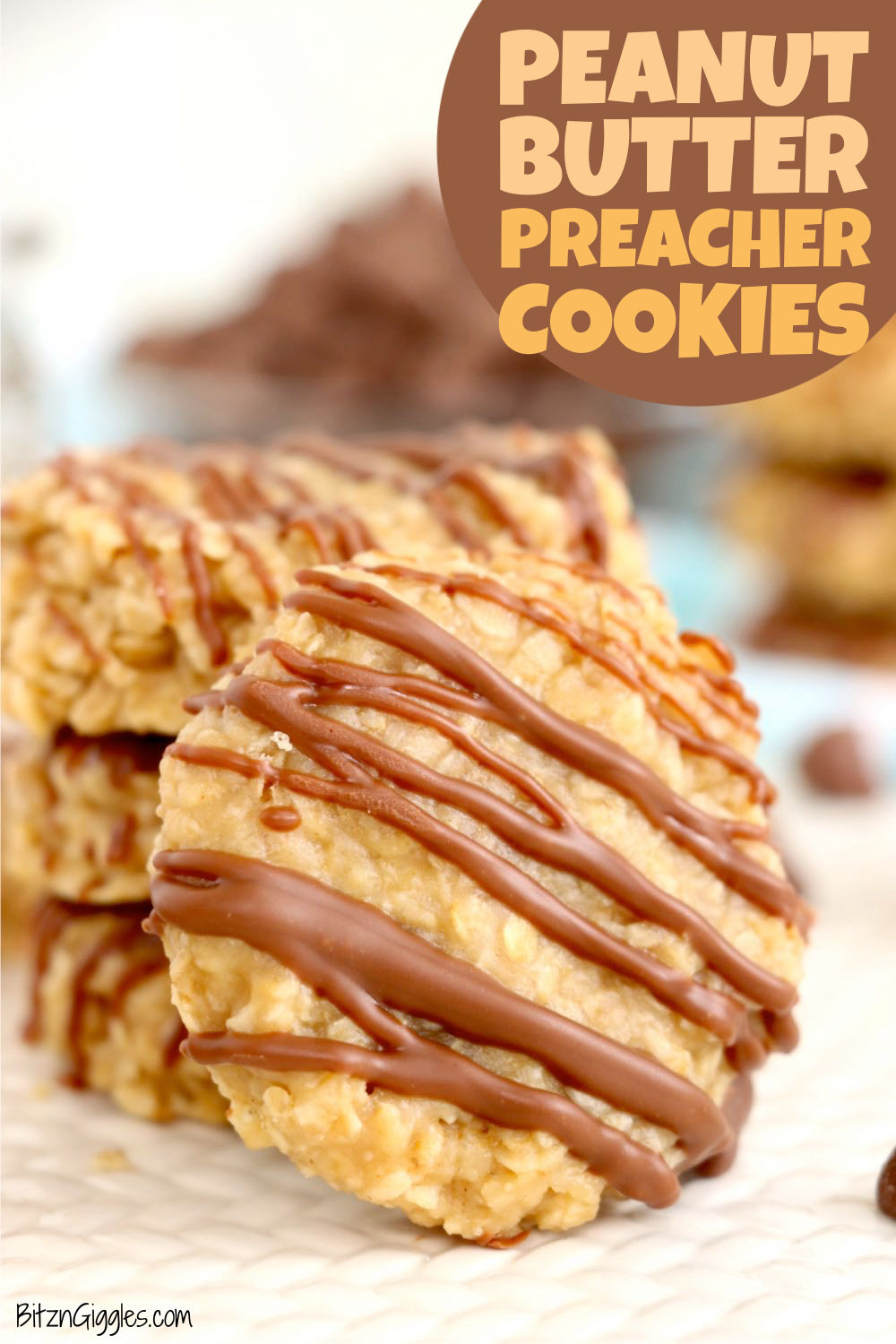 Peanut Butter Preacher Cookies - Easy-to-make, soft and chewy no-bake peanut butter cookies drizzled in sweet melted chocolate.