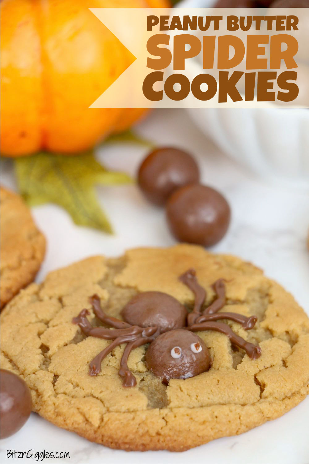 Peanut Butter Spider Cookies - Soft and chewy peanut butter cookies decorated with adorable chocolate spiders! They're a perfect not-so-scary Halloween treat!