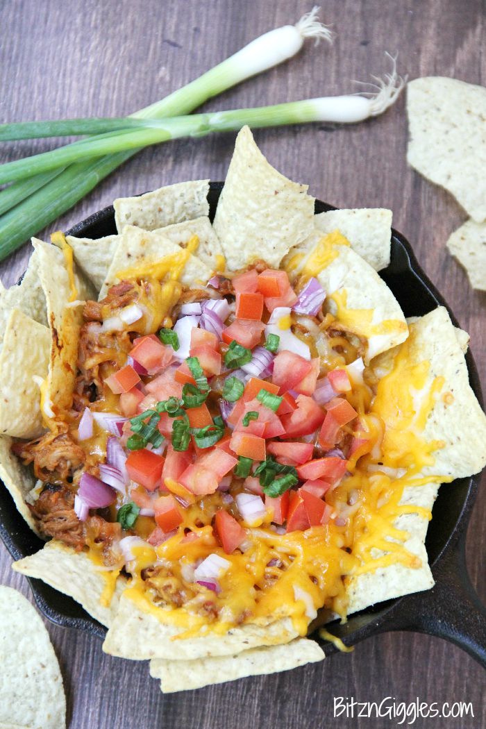 Nachos are one of those foods that I just cannot resist, especially with pulled pork! Perfect for football game watchin'. 😉