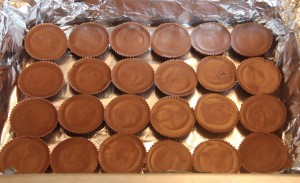 - Place the unwrapped cups in rows in your 9x13" pan. You should be able to fit 4 rows of 6 cups each.