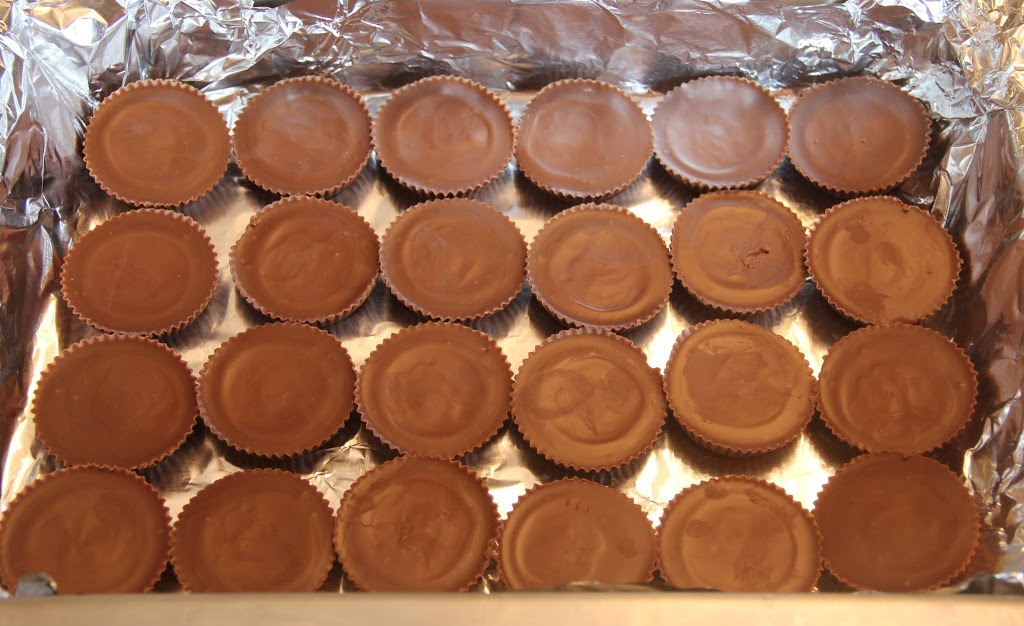 Place the unwrapped cups in rows in your 9x13" pan. You should be able to fit 4 rows of 6 cups each.