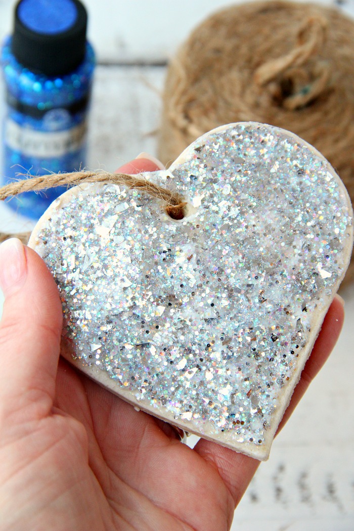 Just for the record, you don't have to use BOTH acrylic glitter paint and glitter. I experimented with both. The heart below was decorated with acrylic glitter paint.