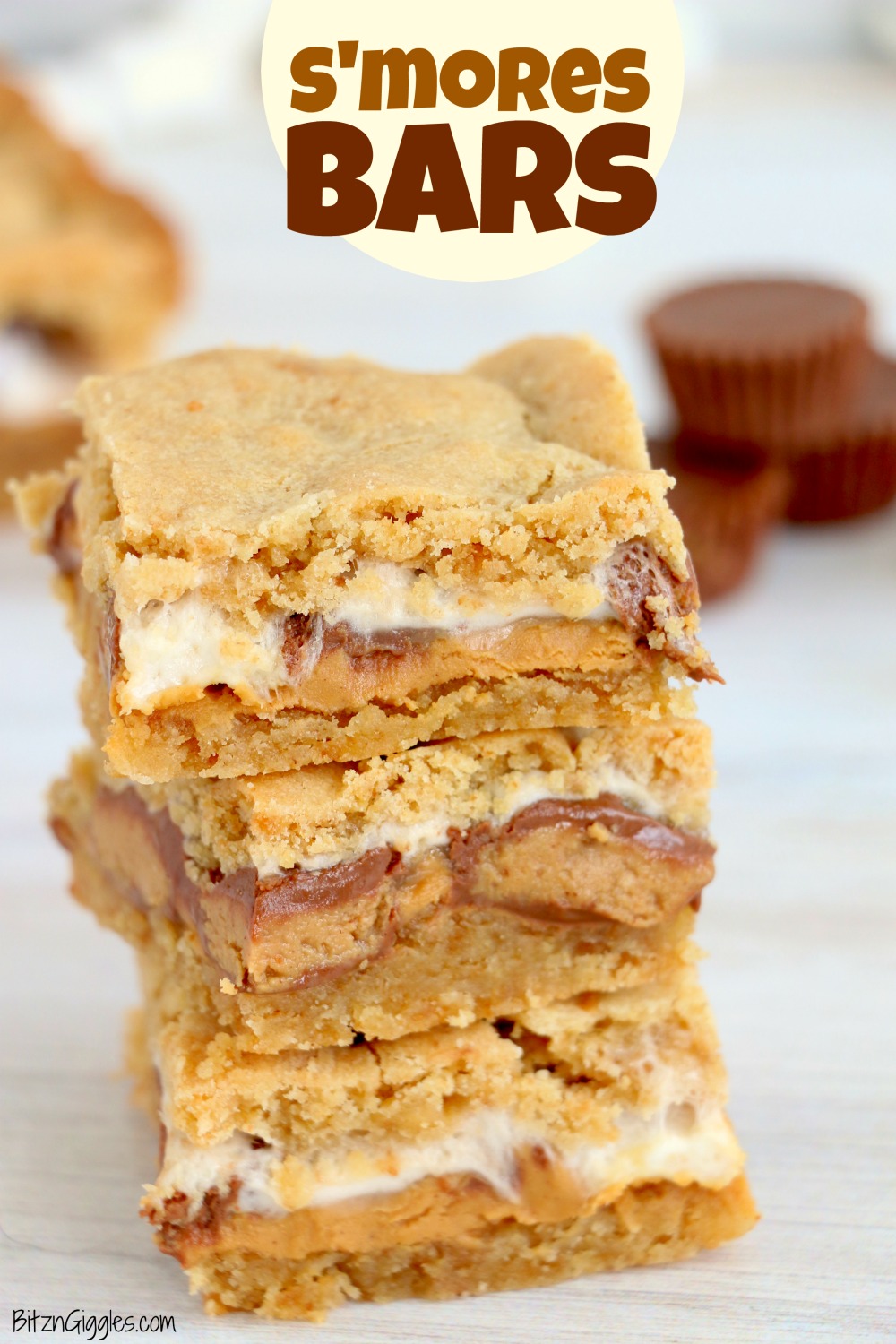 S'mores Bars - Marshmallow, chocolate AND peanut butter, surrounded by a graham cracker crust. If you're a Reese's fan, you're going to love the peanut butter twist on traditional s'mores bars.