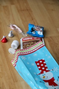 Every year I try to come up with a sweet treat for my son's classmates for Christmas. About a month ago I made up my mind that we would put together a treat bag filled with a cocoa packet, marshmallows and a little toy. That was a month ago.