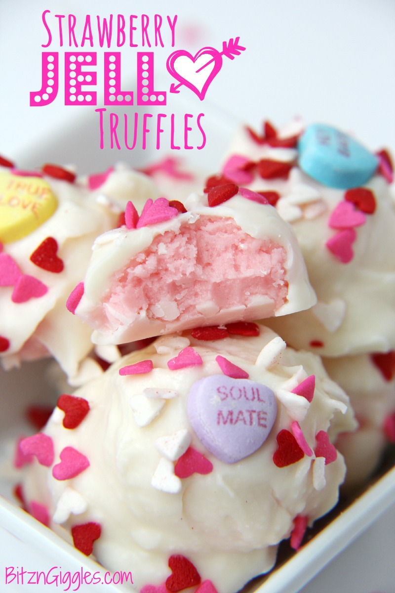 And this strawberry center. It just melts in your mouth. Seriously. Good. Who would have thought something as delicious as truffles were so easy to make? You really could experiment with different flavors of JELL-O for different occasions. Since I wanted to whip these up in honor of Valentine's Day I used strawberry. How about lime for St. Patrick's Day?