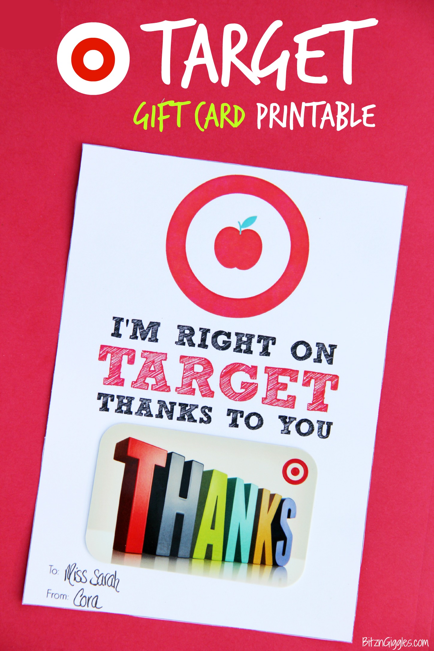 They can use gift cards to purchase something for themselves (let's face it, they are underpaid!) or use them to purchase supplies for the classroom they maybe wouldn't have had the funds for otherwise. While handmade crafts and gifts are cute, teachers only have so much storage space in their homes (just like the rest of us) and how can you be sure you're giving them something they'll really enjoy? So, today I'm sharing a Target Gift Card Printable. Target is one of my favorite stores to shop at and I do know it's often at the top of the list for most teachers, too!
